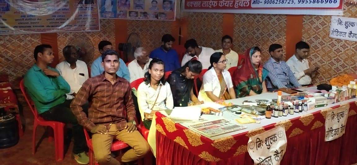 मौर्य शक्ति बक्सर एवं प्रभावती मेमोरियल सेवा संस्थान के संयुक्त तत्वधान में ज्योति प्रकाश चौक पर निशुल्क मेडिकल कैंप लगाया गया है