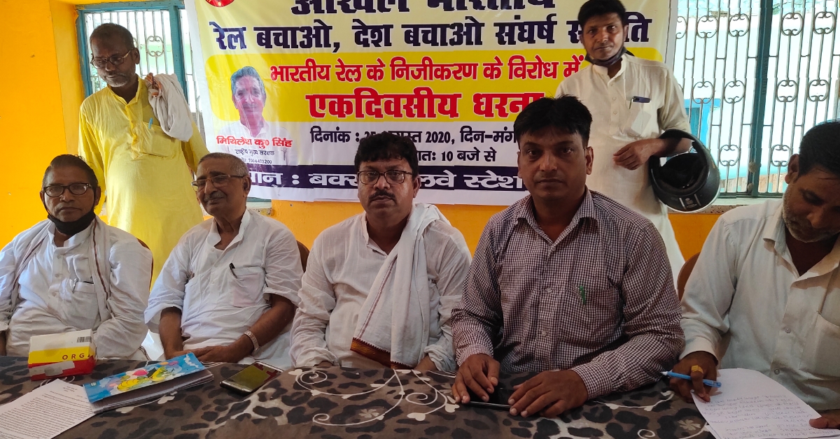 जनमित्र/बक्सरः अखिल भारतीय रेल बचाओ देश बचाओ संघर्ष समिति के बैनर तले एक निजी हॉल में मिथिलेश कुमार सिंह व डॉक्टर निसार अहमद की अध्यक्षता में एक बैठक की गई. बैठक को संबोधित करते हुए डॉक्टर निसार अहमद ने बताया कि दिनांक 25 अगस्त दिन मंगलवार को सुबह 10:00 बजे से बक्सर रेलवे स्टेशन के प्रांगण में शांतिपूर्ण ढंग से एक दिवसीय धरना लॉकडाउन के नियमों एवं संवैधानिक मर्यादा का पालन करते हुए किया जाएगा. उन्होंने कहा कि मौजूदा