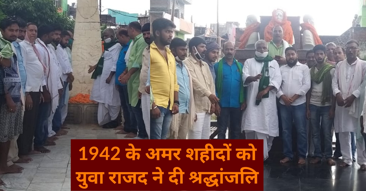 जनमित्र/बक्सरः 16 अगस्त 1942 के अमर शहीदों कपिल मुन्नी कमकर, श्रीराम दास लोहार, श्रीराम दास सोनार, श्री भीखी लाल, श्री साधुशरण आहिर, श्री प्रद्युमन लाल, श्री बिहारी लाल, श्री गोधन राम, श्री सुखादी लोहार, श्री गोपाल कोहार, अब्दुल रहीम के याद में युवा राष्ट्रीय जनता दल नगर के तत्वावधान में राजद पूर्व प्रत्याशी श्री सुनील कुमार उर्फ पप्पू यादव के नेतृत्व में अपने सहयोगी के साथ नगर राजद कार्यालय से शहीद स्मारक तक जाकर अमर शहीदों को श्रद्धा सुमन के पुष्प अर्जित किया. इस मौके पर पप्पू यादव ने 1942 के अमर शहीदों को याद करते हुए कहा कि जो शहीद