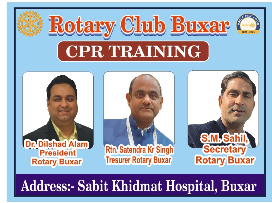 क्लब ने जिलेवासियों से अपील की है कि इस शिविर का अधिक से अधिक लाभ उठाएं। खुद सीपीआर सीखें और दूसरों को भी सिखाएं, ताकि आपातकाल में कोई अनमोल जान न खोए। रोटरी क्लब बक्सर की यह पहल स्वास्थ्य जागरूकता और सामुदायिक सेवा की दिशा में एक सराहनीय कदम साबित हो रही है।