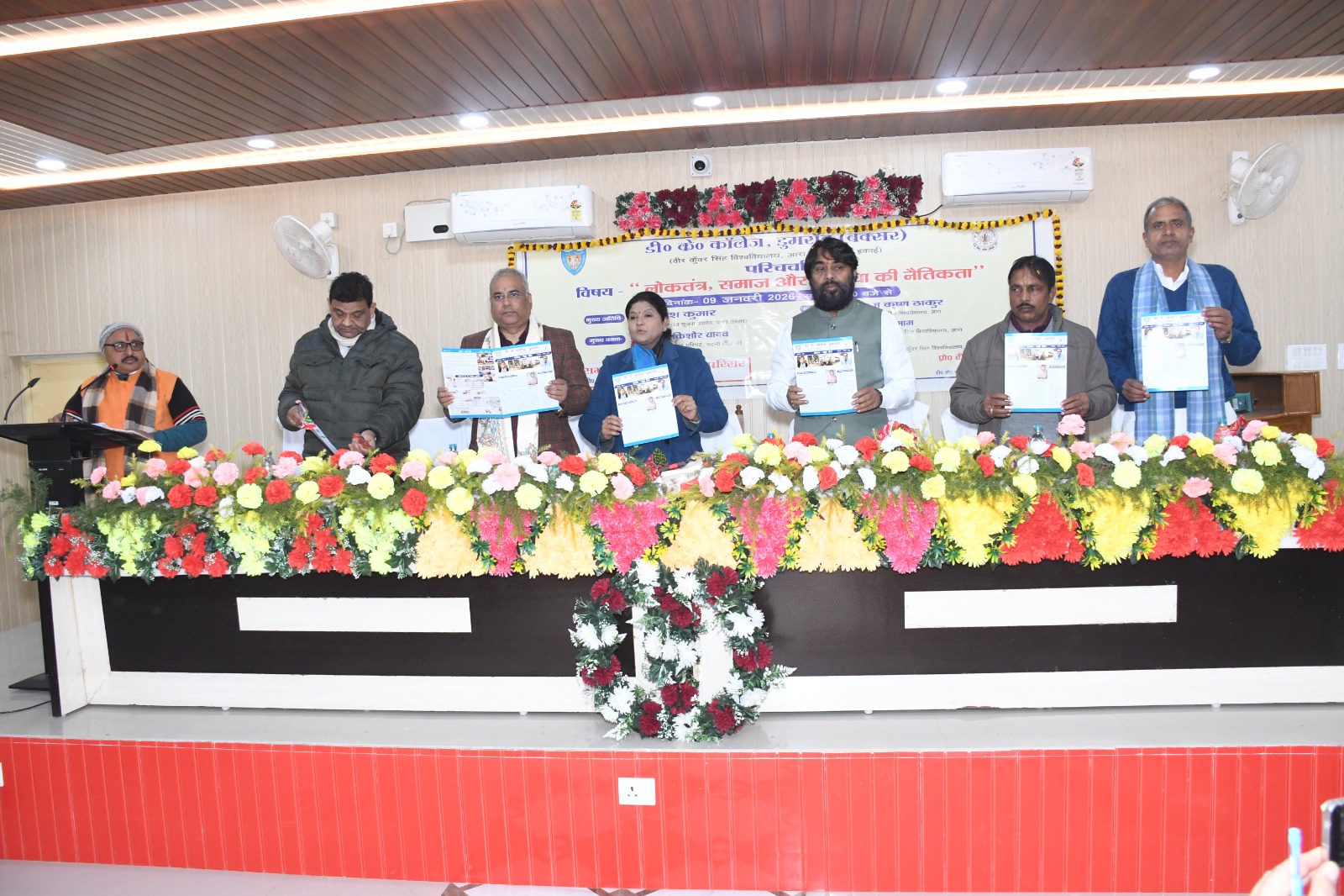 वीर कुंवर सिंह विश्वविद्यालय से संबद्ध डी.के. कॉलेज, डुमराँव में शुक्रवार को “लोकतंत्र, समाज और मीडिया की नैतिकता” विषय पर एकदिवसीय परिचर्चा का आयोजन किया गया। कार्यक्रम में मुख्य अतिथि के रूप में बिहार राज्य सूचना आयोग के आयुक्त श्री प्रकाश कुमार, मुख्य वक्ता के रूप में बिहार विधान परिषद सदस्य प्रो. नवल किशोर यादव, विशिष्ट अतिथि के रूप में विश्वविद्यालय कुलसचिव प्रो. राम कृष्ण ठाकुर तथा महाविद्यालय निरीक्षक श्री राजू मोची उपस्थित रहे।