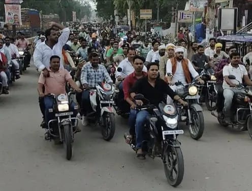 बाइक रैली के नाम पर खुलयाम उड़ाई जा रही है ट्रैफिक नियमों की धज्जियां, वीआईपी नेताओ के आगे नतमस्तक है बक्सर की पुलिस, जांच के नाम पर कमजोरों को थमा देती है चालान …